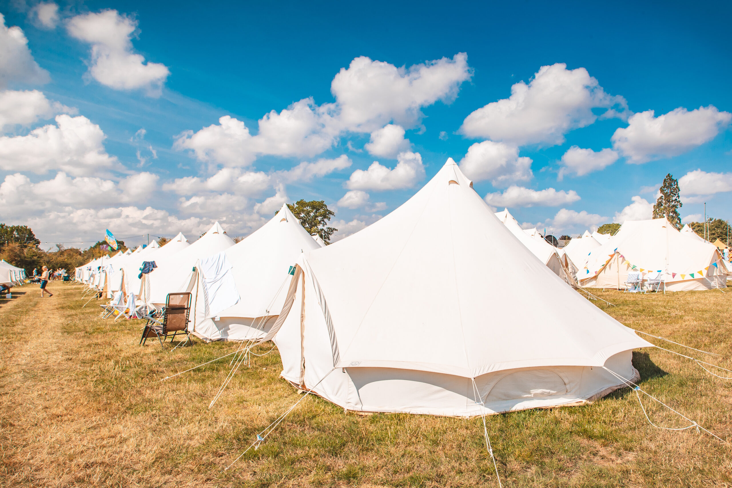 Enjoy a pre-pitched 5x5m Bell Tent in Apple Field, where you will access to all the Apple Field amenities such as toilets & showers. The bell tent will be empty with just a groundsheet, so it’s the perfect option for seasoned campers who like to bring all their own camping gear, favourite sleeping bags and more!